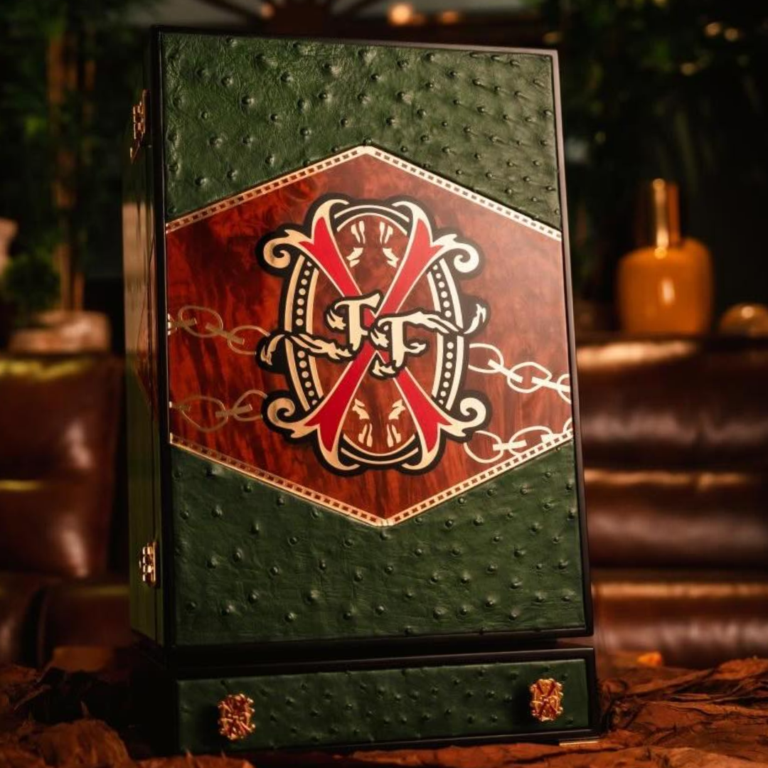 The undeniable star of the evening was a masterpiece from Tabacalera A. Fuente named “Les Chaînes de L’Amour.” Designed by Cyril Brizard in collaboration with luxury artisans, this commercially unreleased cabinet humidor contained 120 Fuente Fuente OpusX Double Corona cigars sourced directly from Arturo Fuente’s private vault.