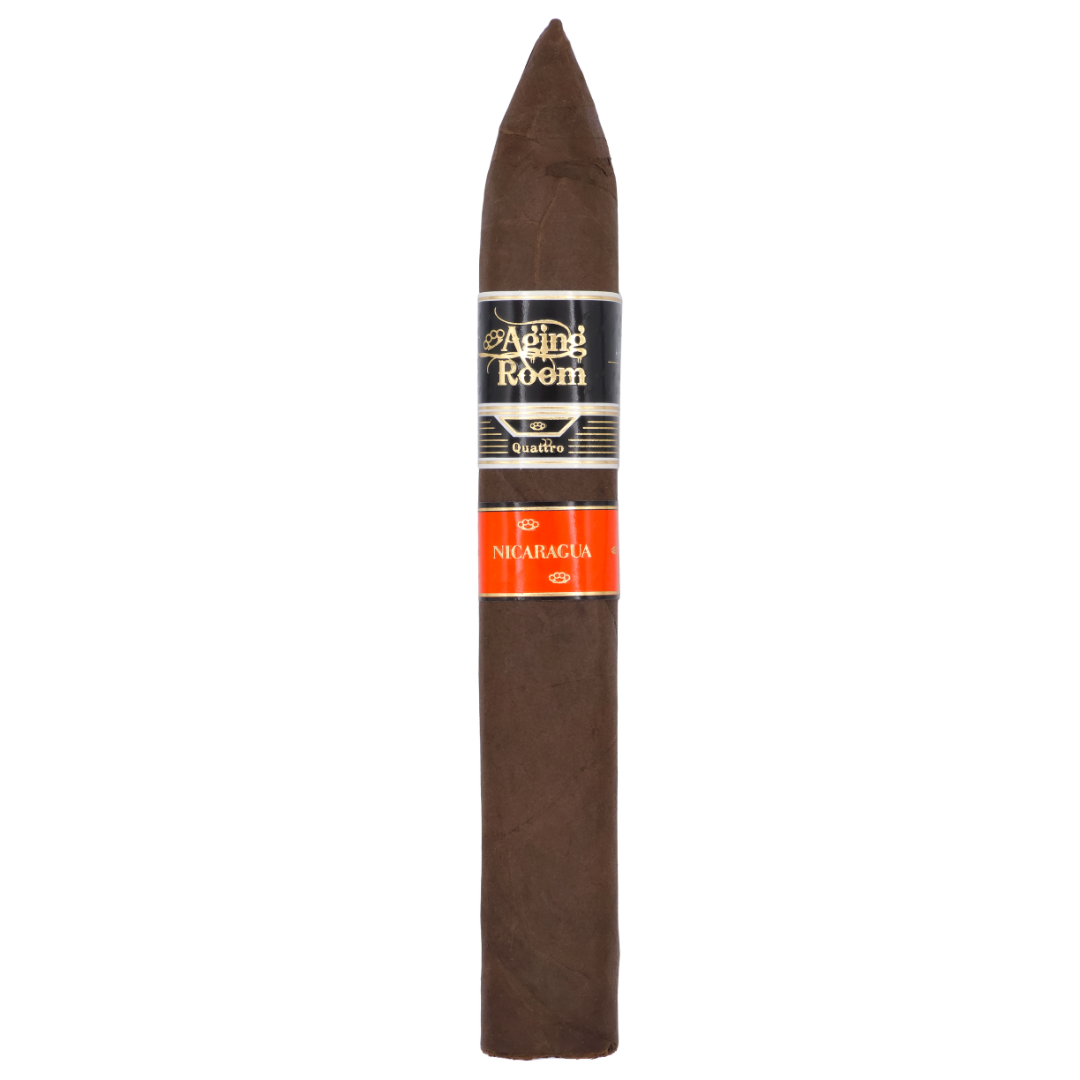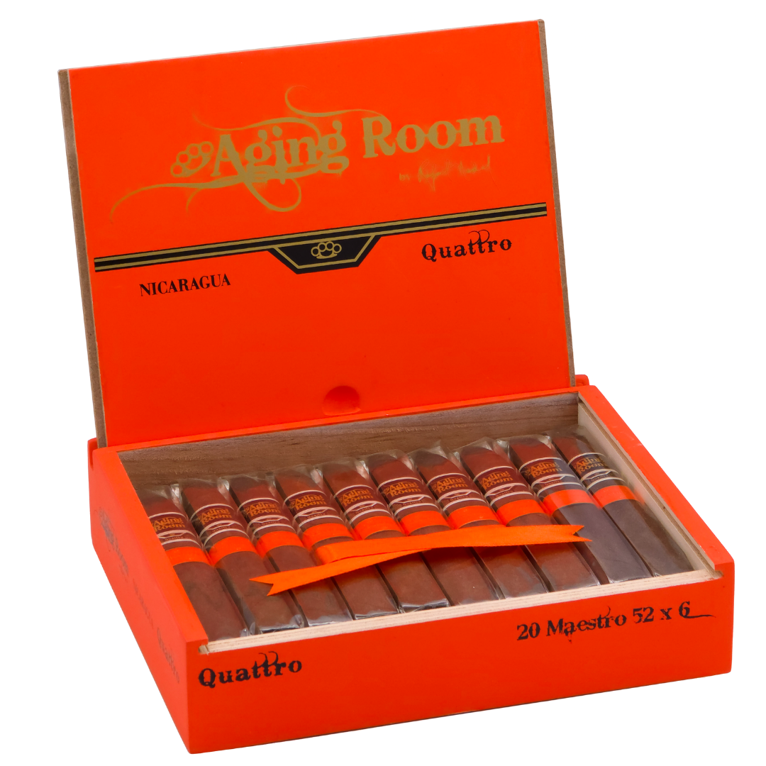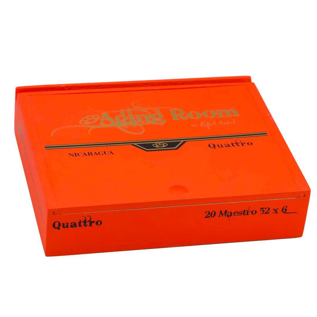Aging Room Quattro Nicaragua Maestro is distinguished by its box pressed toro format that enhances draw consistency and concentrates its bold all Nicaraguan character. This 6 x 52 vitola allows the blend to develop gradually while maintaining structure and depth.