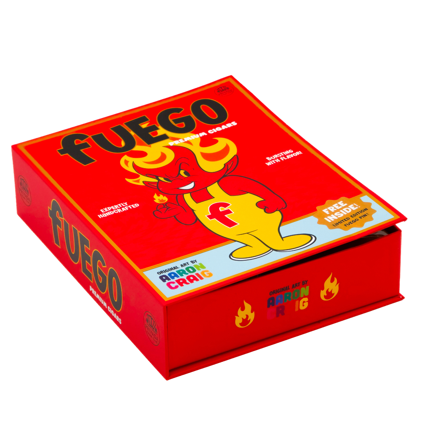 Born from Nicaragua’s volcanic soils and sparked by the imagination of Australian pop mash artist Aaron Craig, Fuego is where craftsmanship and creativity collide. This is more than a cigar — it’s an idea lit aflame. AJ Fernández, the legendary master of tobacco, crafted this blend at his Tabacalera Annex, building it entirely from his own Nicaraguan-grown tobaccos.