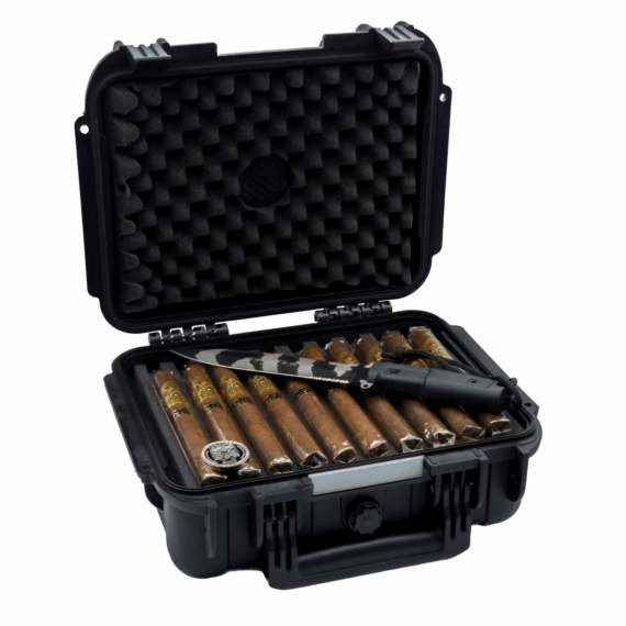 The SEAL’s cigars come in a pelican-style, waterproof case, protecting three layers of foam inside that hold 20 cigars in two layers of 10, plus a custom made knife (D Tooth #2 Steel) – also in its own cut-out – to help protect the owner from possible thieves! These cigars are only made for the brave.