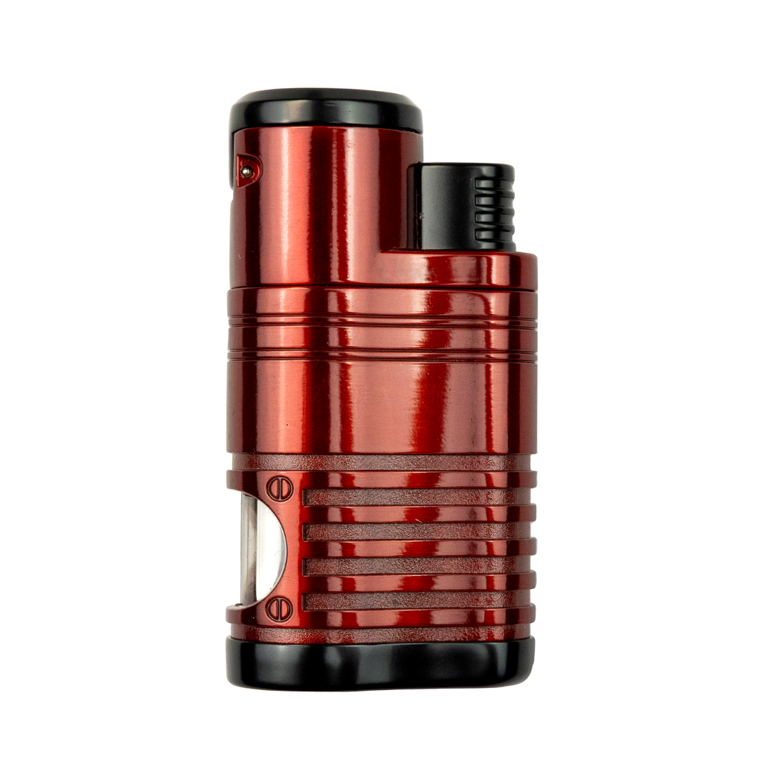 The main advantage of the Regal Red Flame Lighter is its powerful quad jet torch that makes lighting large ring gauge cigars fast and reliable, even in windy conditions. This all metal lighter is built around four wind resistant jets that merge into a high intensity red flame, giving you concentrated heat for quick, even toasts at home, on the patio, or on the go. A clear fuel window on the body lets you check your butane level at a glance, so you can refill before a long night rather than being surprised by an empty tank.