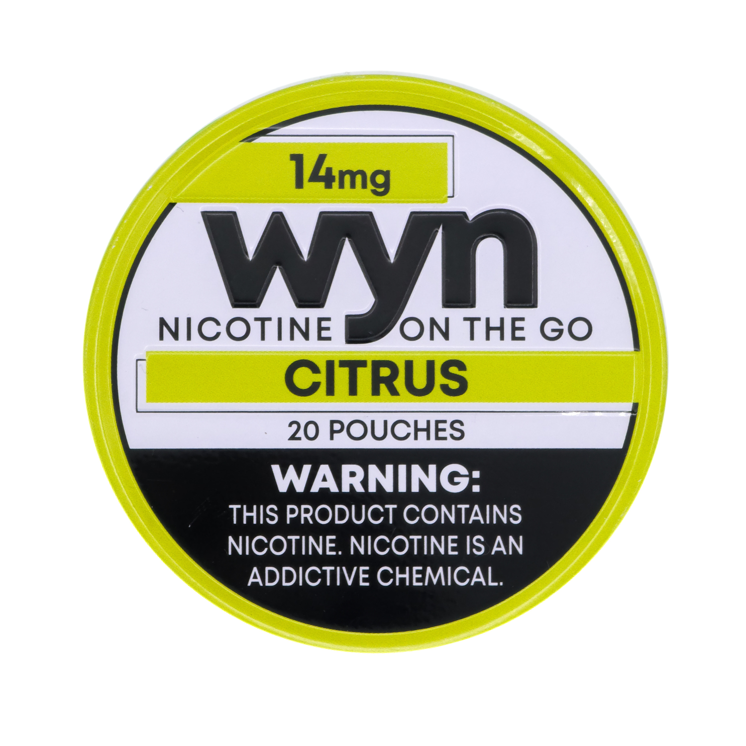Experience a bold burst of citrus with WYN Citrus 14 mg nicotine pouches. Designed for adult nicotine users who prefer a strong, fast-acting experience, this flavor delivers a crisp blend of bright citrus notes with a smooth, refreshing finish. The slim, tobacco-free pouches fit comfortably under the lip and provide a clean, discreet way to enjoy nicotine anytime, anywhere—no smoke, vapor, or odor.
